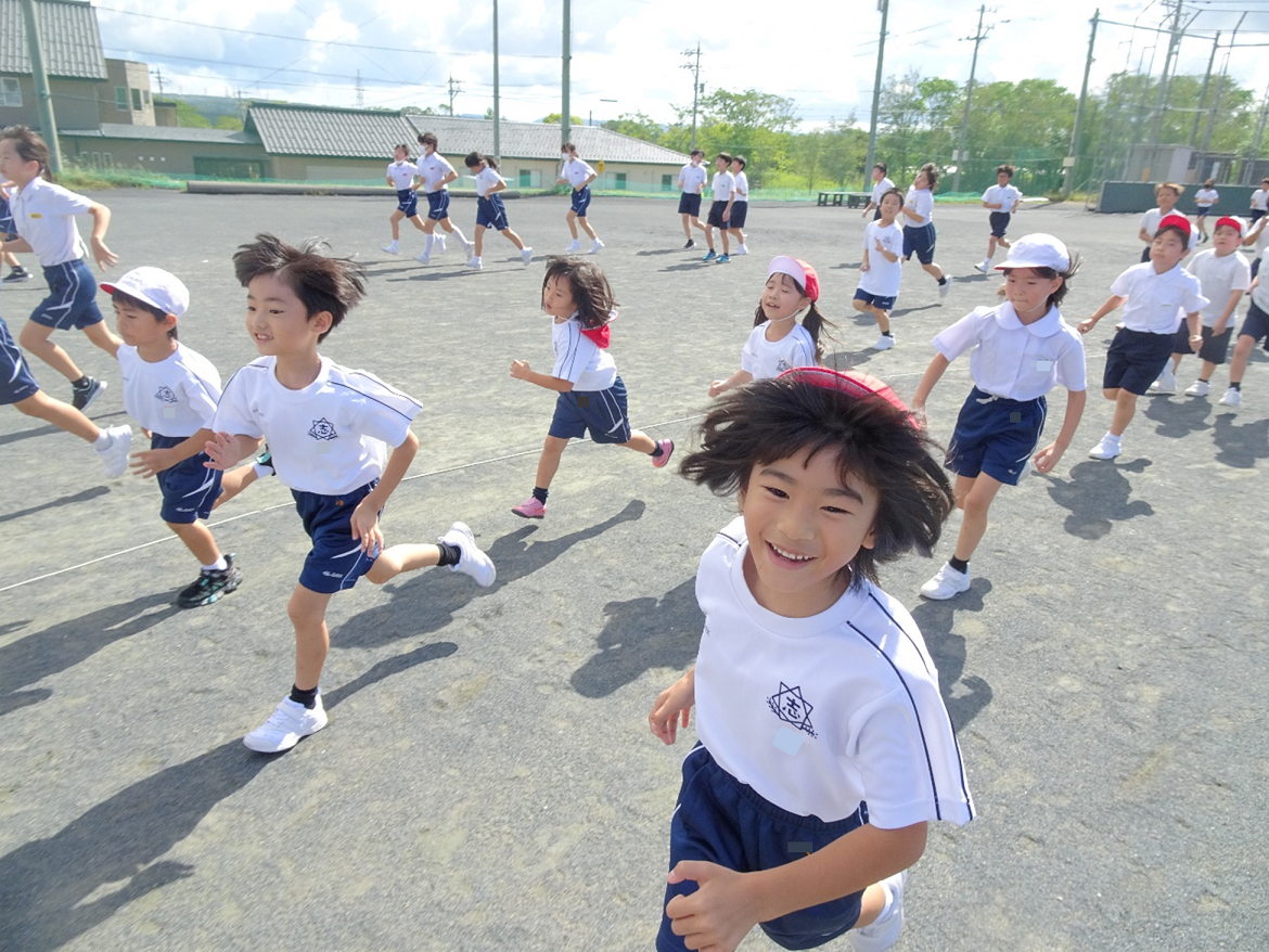 R7国や県の体力・運動能力,運動習慣調査の「シャトルラン」の項目を見ると,本校の子どもたちは概ね県平均を上回り,持久力が徐々に伸びてきていることがわかりました。その力の維持・向上に向け,今年度も「志賀っ子ラントレタイム」を開始しました。長休みの10分間程度,全校の子どもたちがそれぞれの目標に向け,自分のペースで走ります。
