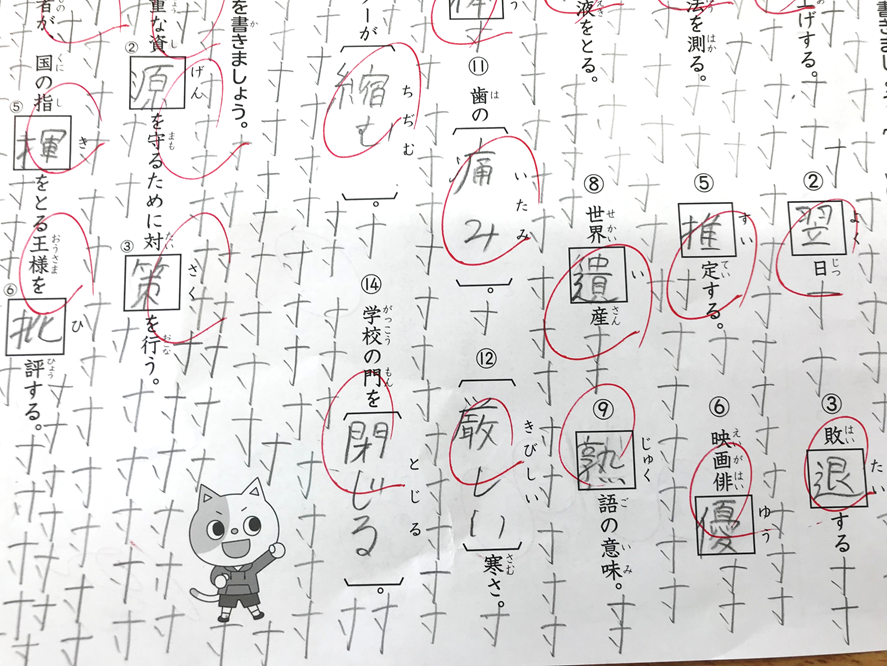 Bさん:「すき間いっぱいに漢字を練習しました!」