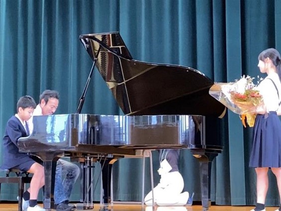 奇跡のピアニスト 西川 悟平氏が,志賀小学校を訪れました。