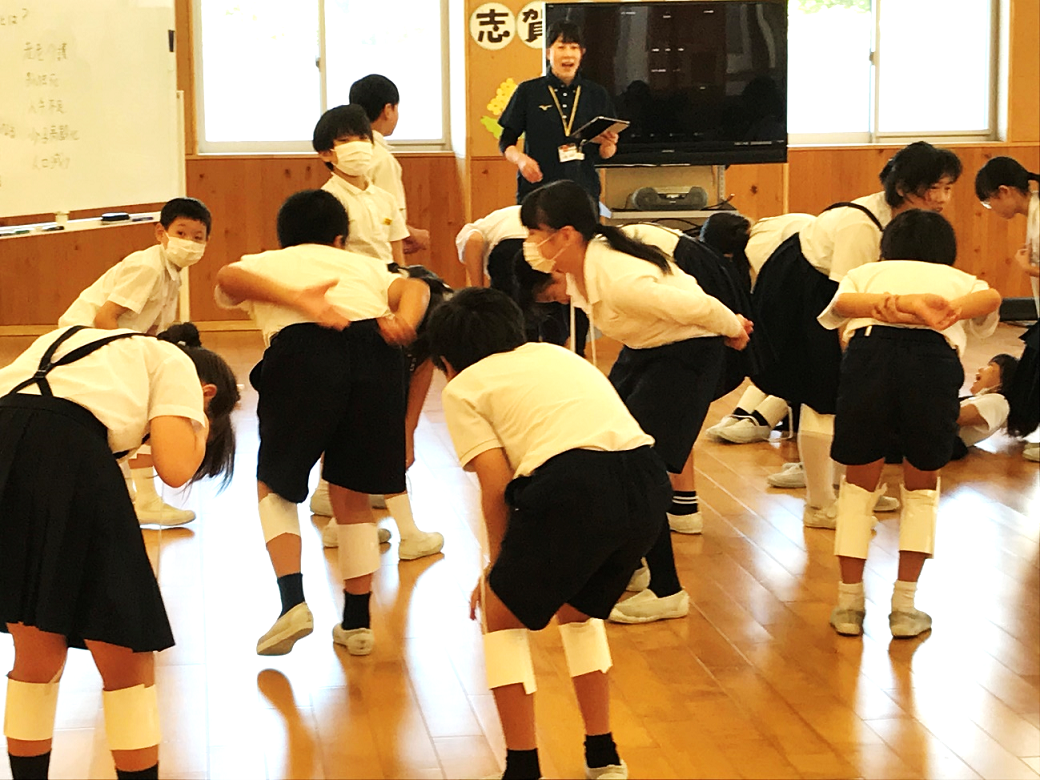 6年生のみんなも,大島さんと一緒に汗を流し,改めて「基本の大切さ」に気づくことができました。大島さん,関係のみなさん,貴重な機会を提供していただき本当にありがとうゴアいました。