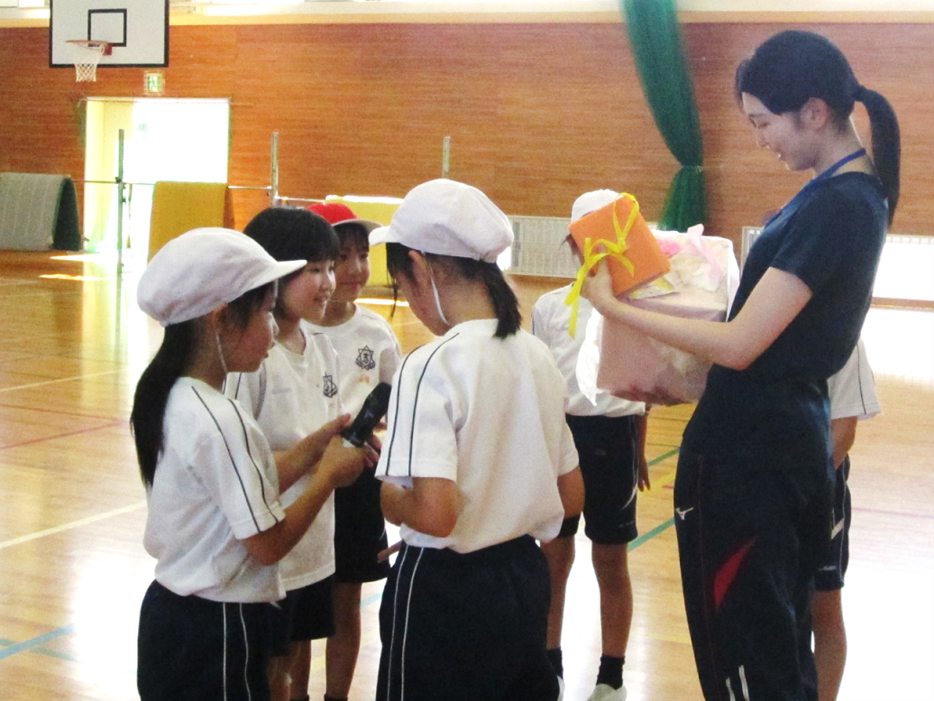 北京オリンピックに体操日本代表として出場,活躍された大島 杏子さんが,志賀小学校を訪れてくださいました。