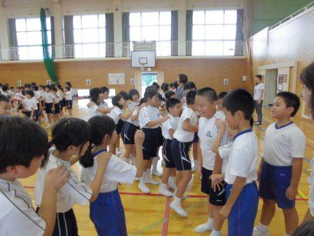9月21日(金)に本校の3年生は志賀小学校で器械運動交歓会を行いました。この日のために体育の授業でマット、鉄棒、跳び箱運動を必死に練習してきたので、全員が自分の持てる力をしっかりと出すことができました。器械運動の後は志賀小学校の3年生とじゃんけん列車をして交流を深め、新しい友達を作っていました。