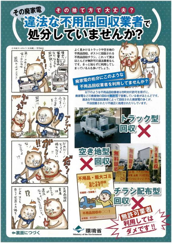 無許可の業者による廃棄物の回収は違法ですので利用しないでください。