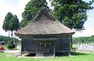 建立の年代については文献等がなく定かではありませんが、その様式や構造手法から本殿(重要文化財)と同じく室町時代末期の造立と考えられます。中世にさかのぼる拝殿は県下に例がなく、しかも本殿とセットになって保存されている大変意義深い建築物です。