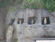 富来川左岸の岩壁の中腹に、7つの墳墓窟が掘られ、中には仏塔や板碑が造立、安置されています。このような墳墓窟は通称「やぐら」と呼ばれ主に武士の墓として中世の鎌倉地方に盛行したもので、他の地方にはあまり例のないものです。