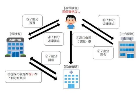 例1)社会保険に加入したのに国保の脱退手続きをせずに志賀町の資格確認書を使って医療機関を受診した。