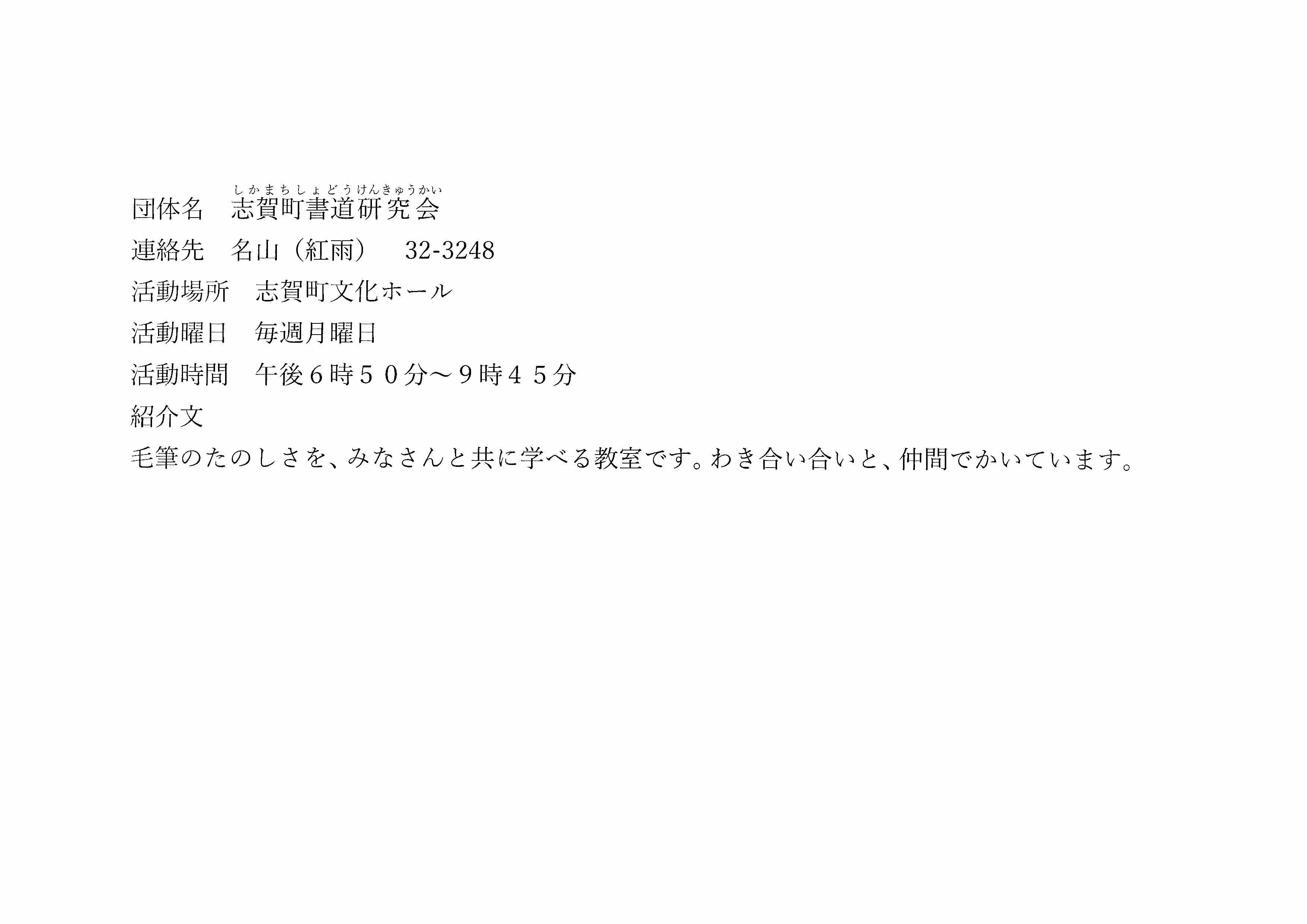 志賀町文化協会 各団体紹介 (新規会員募集中です!!)