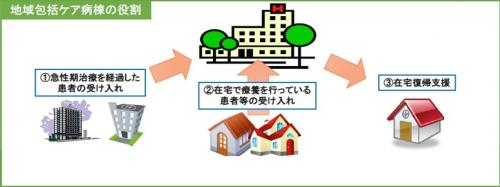 地域包括ケア病床とは、急性期医療を終了し、すぐに自宅や施設に移るには不安がある患者様に対し、医療管理、診察、リハビリなど在宅復帰を行うことを目的にした病床です。