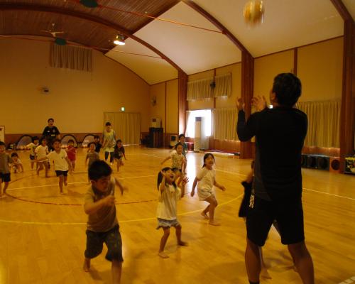 ボールを上げている間だけ動けるよ! 誰が先にタッチできるかな!?