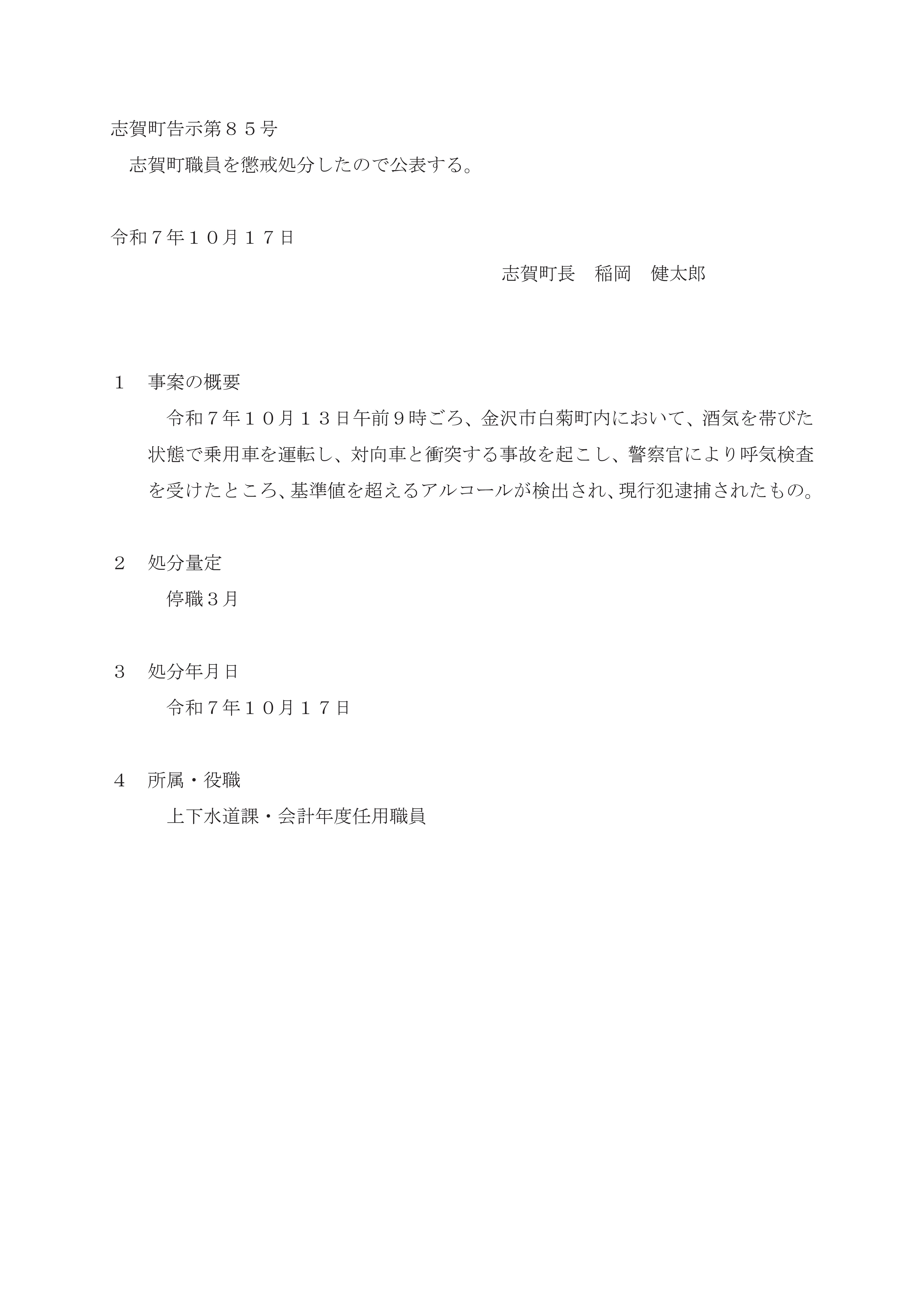 住所: 〒925-0198 石川県羽咋郡志賀町末吉千古1番地1 本庁舎3階